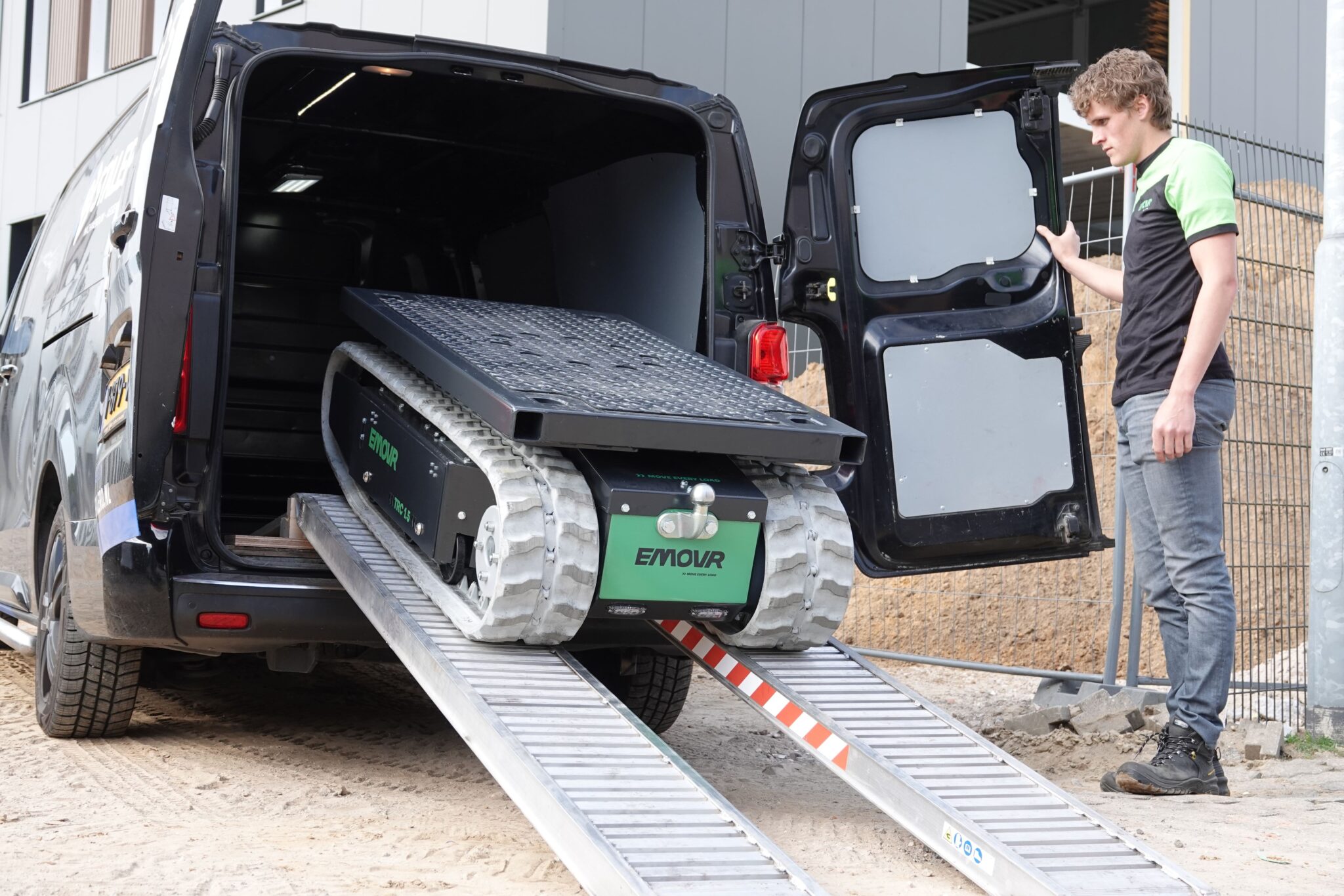 Emovr-bæreren er en kompakt verktøybærer med et utrolig bredt bruksområde. Vi oppnår dette ved å legge til diverse hurtigbytteutstyr til bæreren. Disse redskapene styres alltid via samme fjernkontroll, noe som gjør det raskt og enkelt å jobbe med bæreren vår. I tillegg til de forskjellige redskapene kan du også bruke bæreren som transportkjøretøy. Forvandle deg fra gaffeltruckfører til kranfører på bare 60 sekunder!
