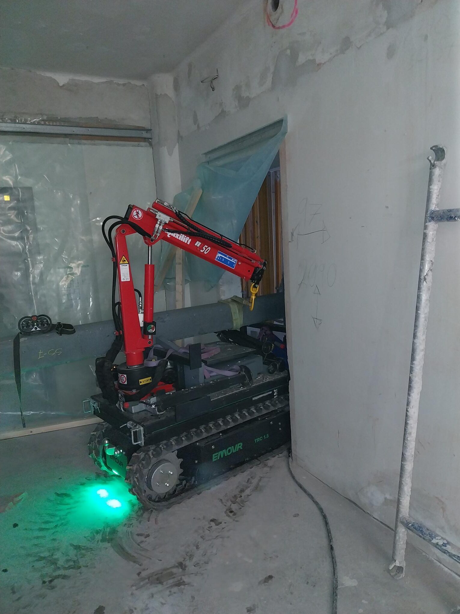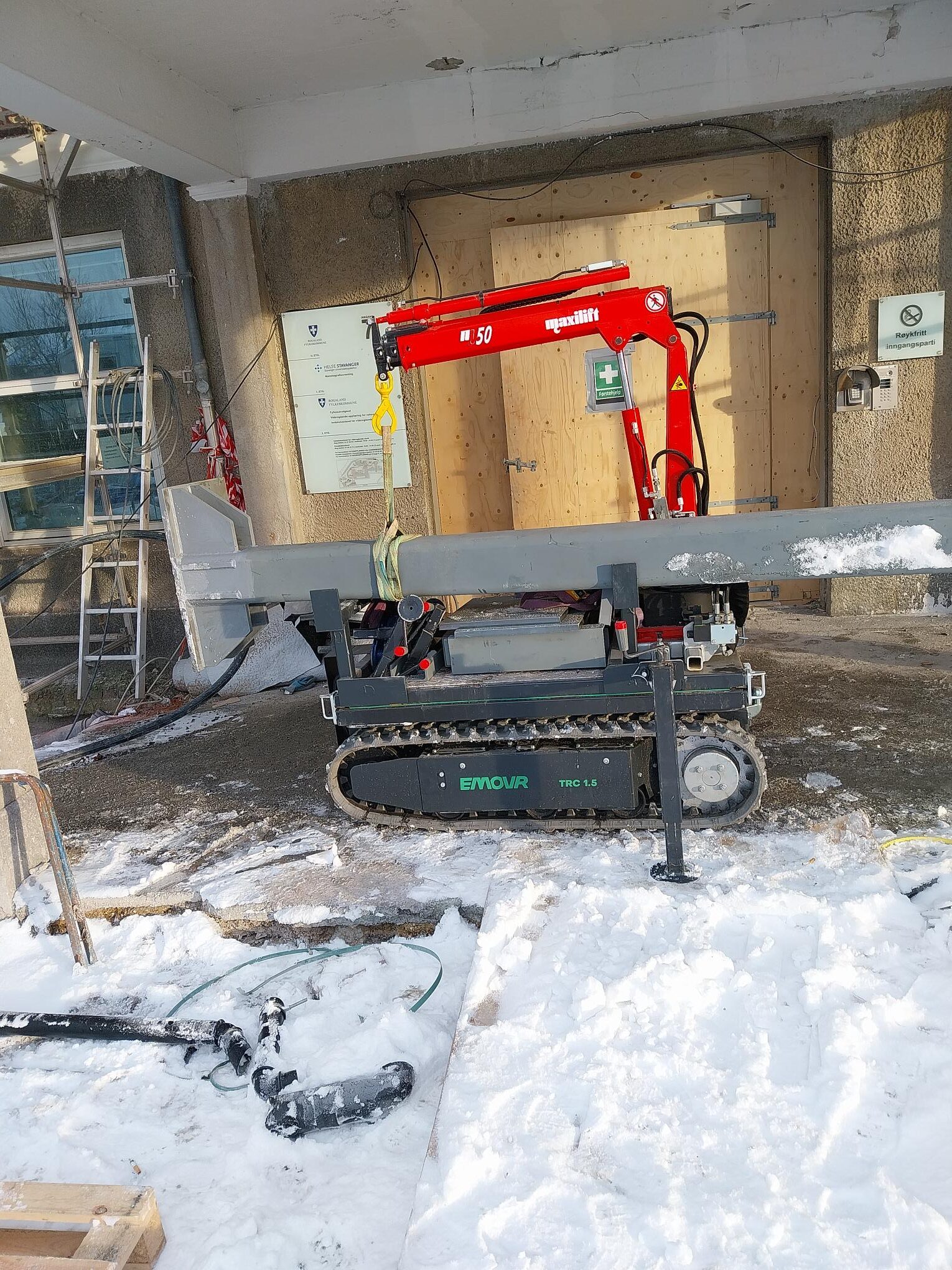 Et helt nytt redskap til EMOVR TRC 1.5: en hydraulisk kran, spesialdesignet for tungt, presist laste- og lossearbeid på byggeplasser og i bylogistikk.